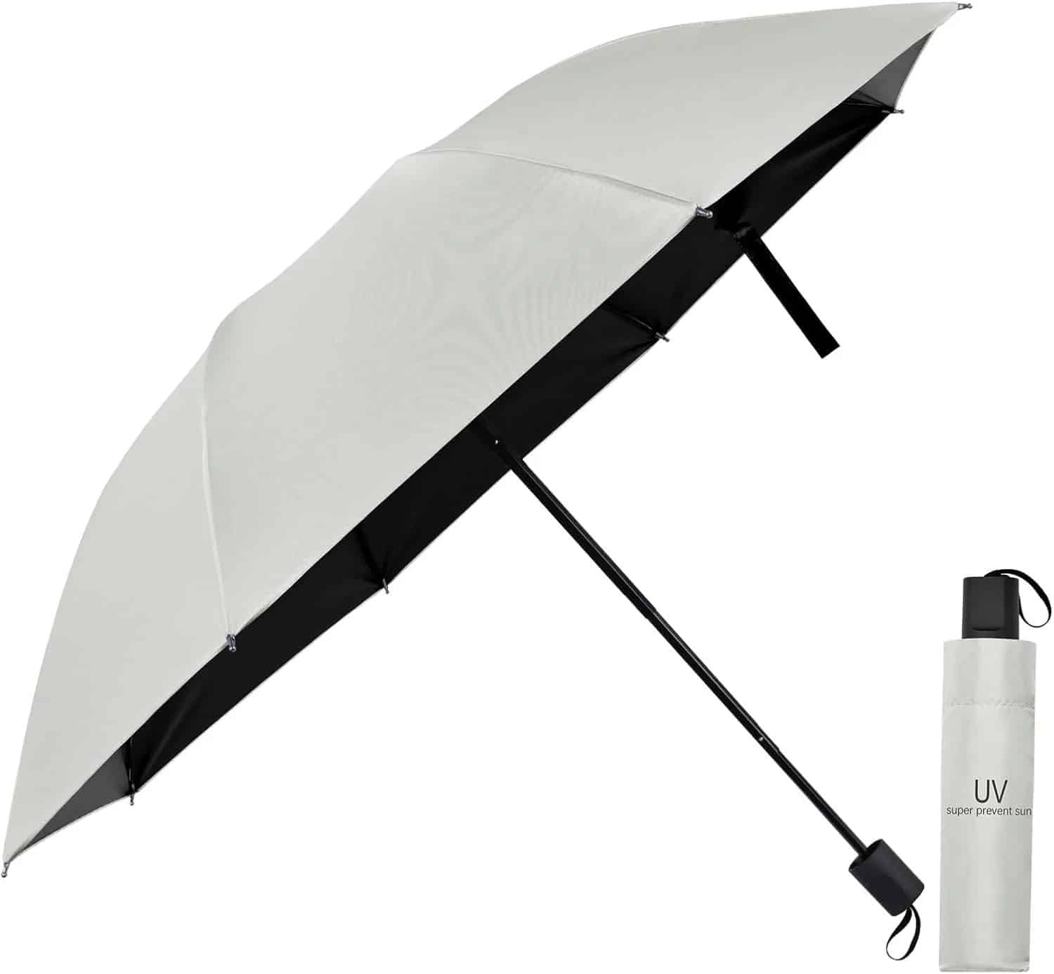 ⛱ El tejido impermeable 210T con revestimiento especial y el mango de antideslizante lo hacen superior a otros paraguas compactos. Y tiene una buena función de protección solar. Revestimiento interior totalmente negro para protección UV UPF > 50+.